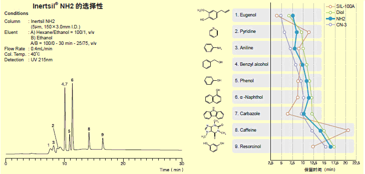 Inertsil NH2正相色譜柱—呈現特征性分離模式的氨基色譜柱