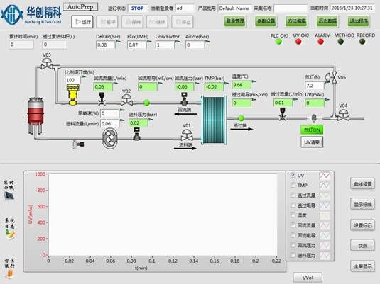 在控制軟件上可通過手動或預設定程序自動進行超濾操作,實驗手動模式或全自動模式。
