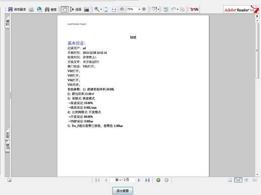 超濾全程中可在線監測相關數據及記錄操作過程:時間、壓力、流速、溫度、電導、報警信息、操作及程序運行過程,并能通過日志記錄操作過程,可進行追蹤。