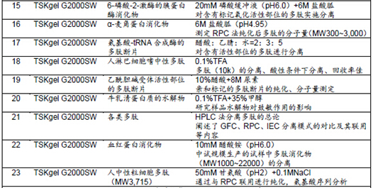 表1所示為TSKgel色譜柱在采用GFC法進行多肽分離的相關文獻及其概要。