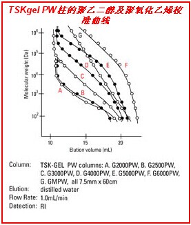 1. TSKgel PW柱由親水性球形聚甲基丙烯酸酯顆粒填充。